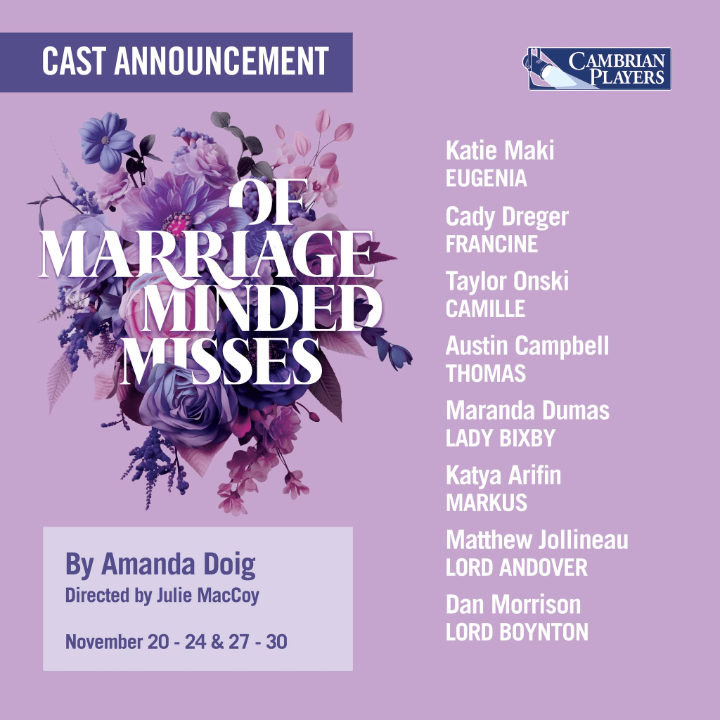 About a month or so ago – maybe longer now (what is time?) – I auditioned for the Cambrian Players, an incredible local organization dedicated to “theatre for the love of it!” right here in ye ol’ Bay of Thunder.